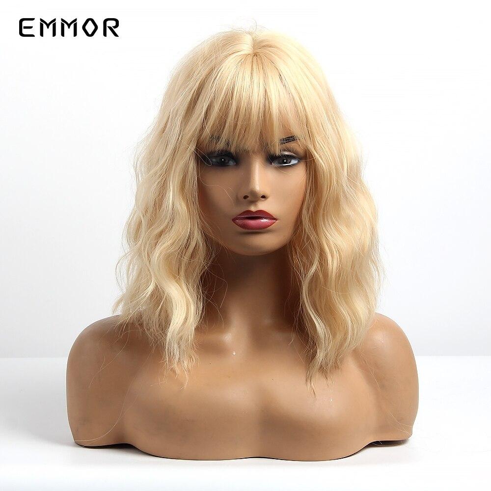 Короткие светлые волосы с волнистой волной, парик с челкой для женщин, синтетический термостойкий боб, повседневный косплей, вечерние прически, парики