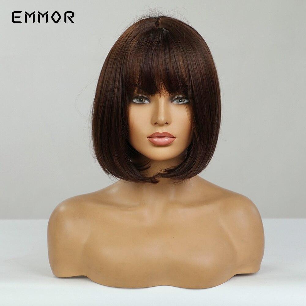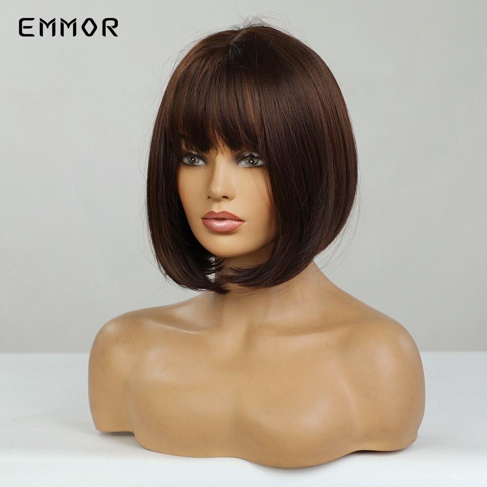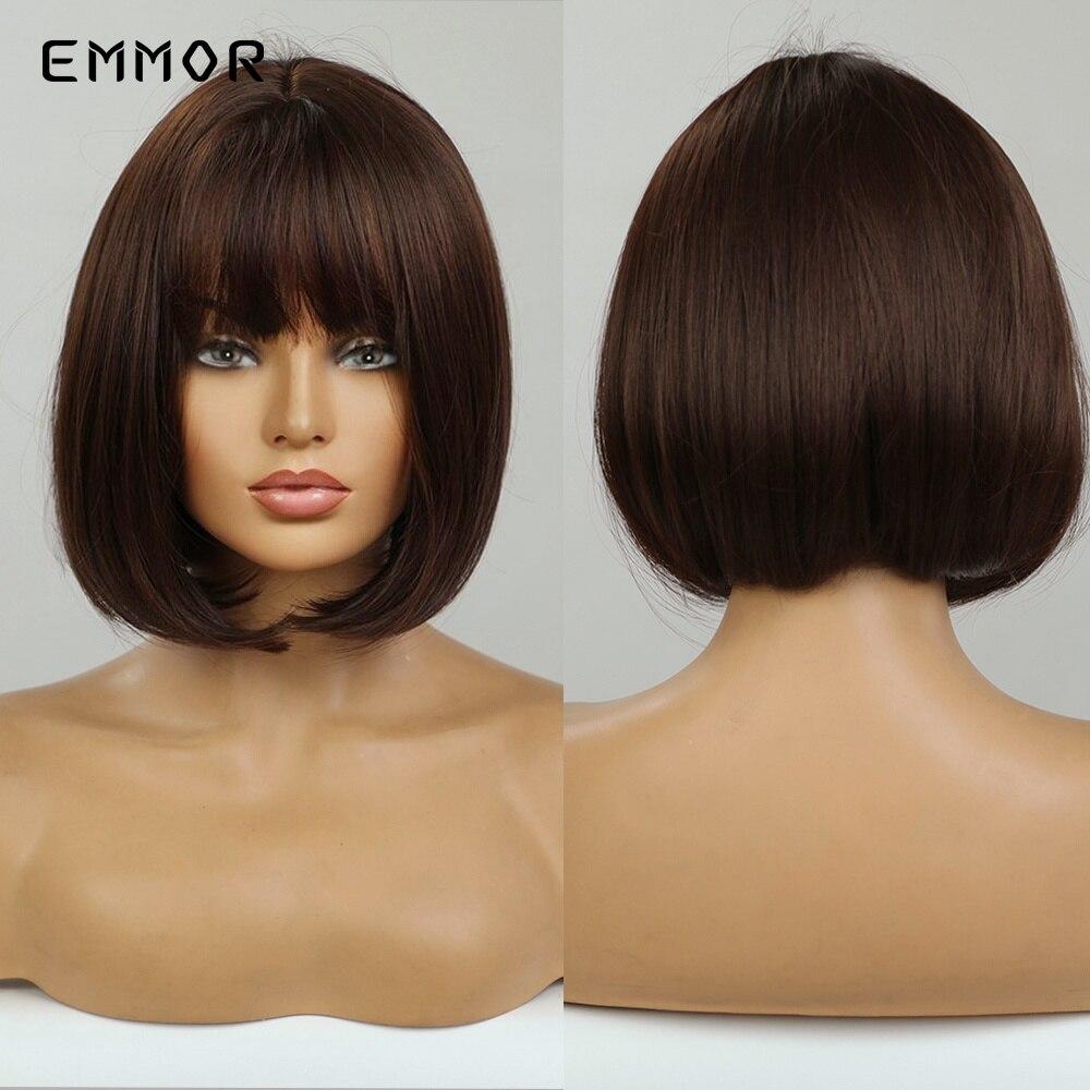 Темно-коричневый тип волосПарик для женщин Короткий прямой боб Синтетические волосыПарики с челкой Повседневное использование для косплея