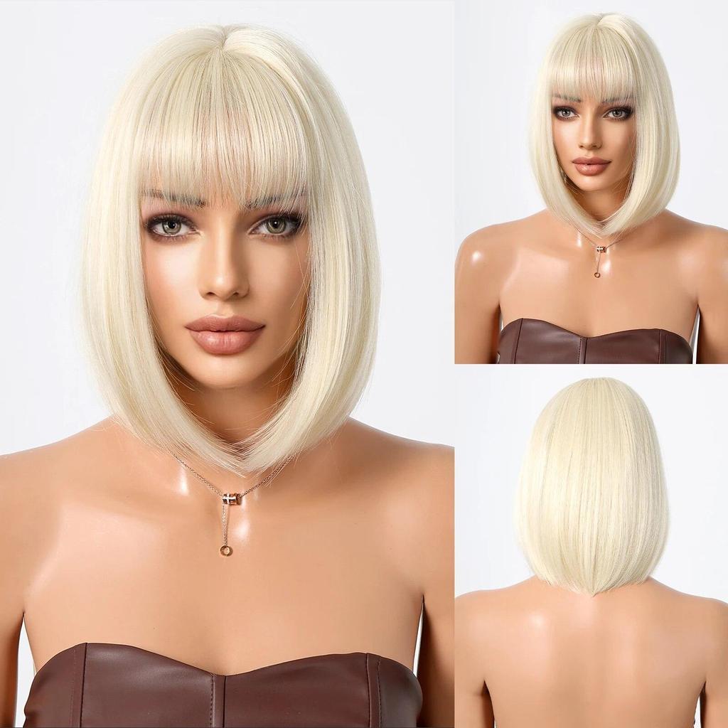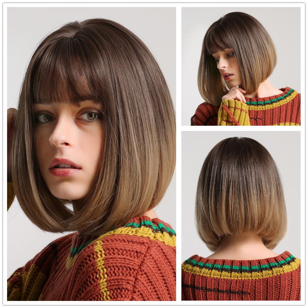 ALAN EATON Парик из коричневых и светлых волос с челкой для женщин, короткие прямые парики для косплея, термостойкие волокна, парики