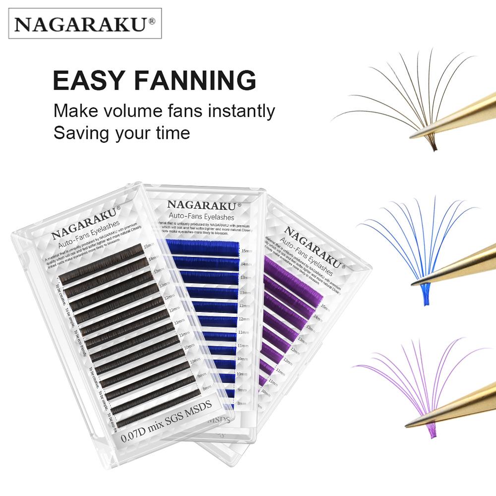 Цветные легкие веерные ресницы NAGARAKU коричневые, фиолетовые, синие, смешанные, 8-15 мм, 12 линий, мегаобъемное наращивание ресниц