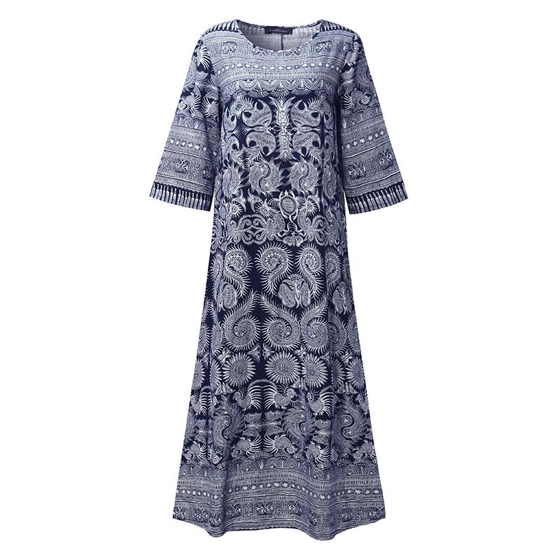 ZANZEA Женское платье с круглым вырезом и рукавами 3/4, летнее винтажное свободное хлопковое длинное платье с принтом — купить товар онлайн с бесплатной доставкой до всему миру!