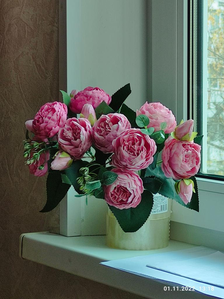 Цвет цветов не такой яркий и красочный, как показано на фото. На деле розово серый, грязноватый цвет. Разочарование! Над паром подержали, распушили, стали выглядеть получше, но цвет, как писала ранее, не такой как на фото.И ещё... На Алиэкспресс такие цветы в два раза дешевле!!!