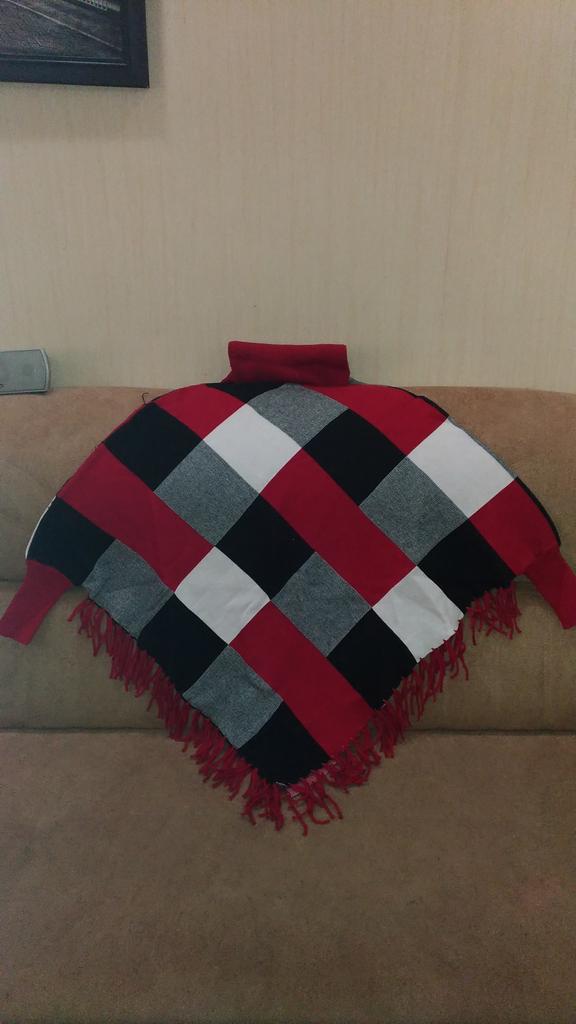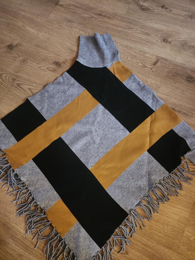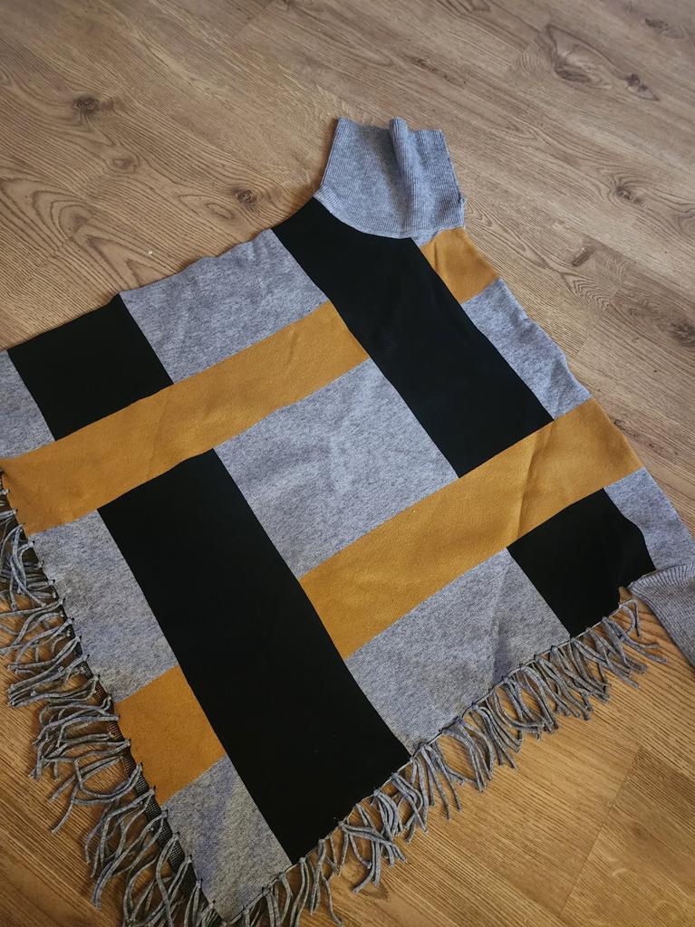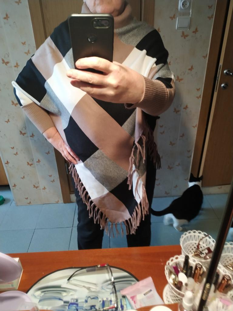 Панчо понравилось, мой размер, на 56,ОГ 116,высылаю фото, смотрите. Материал не плотный, не толстый. Расцветка хорошая. К рукавам нужно привыкнуть, под шеей немного образуется" гармошка", одергивать нужно. Думаю, носить пока на работе, у нас прохладно, под пальто и плащ, не знаю, как одеть, рукава то не очень позволяют. Короче, разберемся. Носить можно, теплый, уютный, красивый. Спасибо работникам Джума.