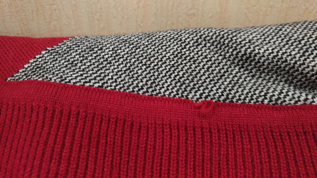 Выкройка самая простая-квадрат, сложенный пополам. Один шов по одному рукаву. Шов внутри не обработан. Рукавов, как таковых нет. Манжеты пришиты к боковым углам квадрата. Руки понимаются вместе с накдкой. Кофтой это не назовёшь. Плечевых выточек нет, поэтому возле горловимы образуются заломы. Качество полотна хорошее, плотное, приятное на ощупь. Смотрится не плохо, если руки не поднимать. Можно носить, как верхнюю одежду в прохладную погоду.