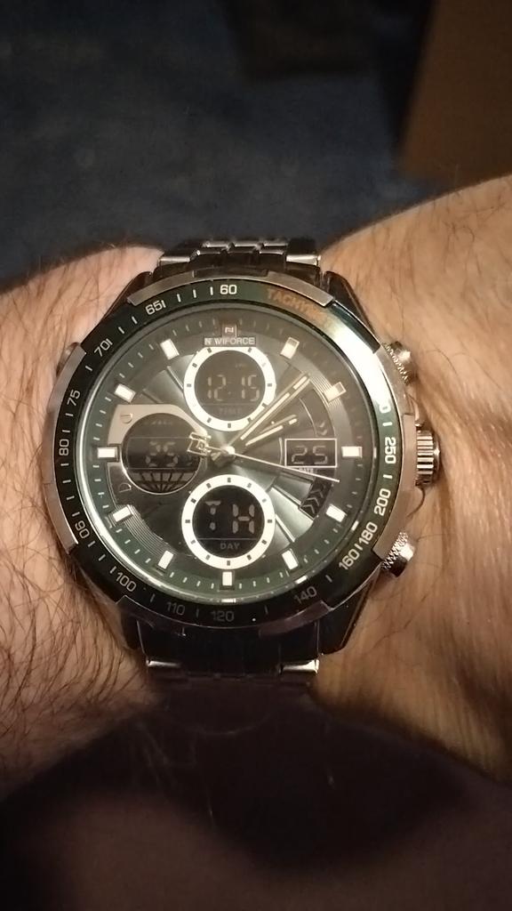 Часы красивые, стекло с синим отблеском как и заказывали... Но, стрелки цепляются друг за друга и не ходят-понесём в ремонт, ремешок на троечку, кнопки по бокам-муляж, как и три маленьких циферблата в центре. Шли 2 месяца до Краснодара, до сих пор показывают, что они в Китае.