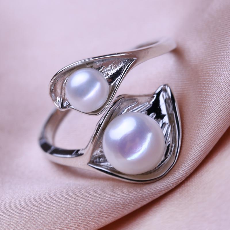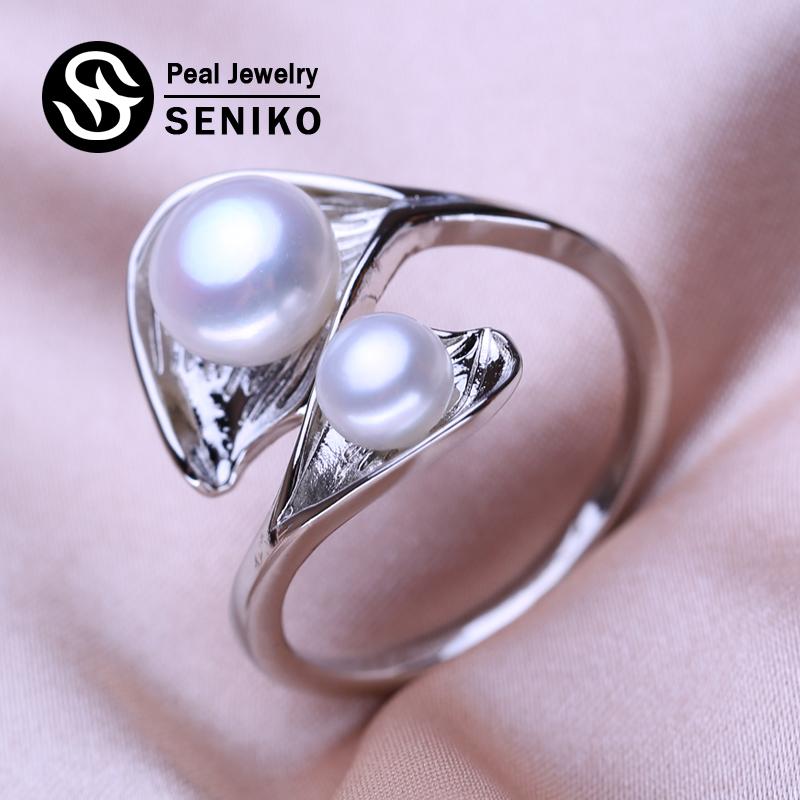 seniko Кольца с натуральным пресноводным жемчугом для женщин, модные женские кольца с двойным жемчугом, ювелирные изделия, регулируемое кольцо
