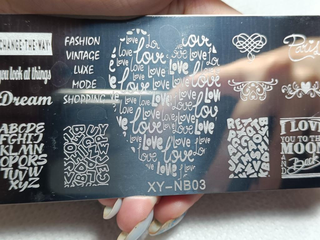 Пластина классная, в основном заказала из-за надписей, переносится на штамп отлично, единственное заметила, что на сердечке из слов love, по середине идёт полоска из за чего, некоторые надписи не полностью пробиты, но это не критично, можно просто не по середине наносить лак, а ближе к краям. А так все супер, спасибо🤗