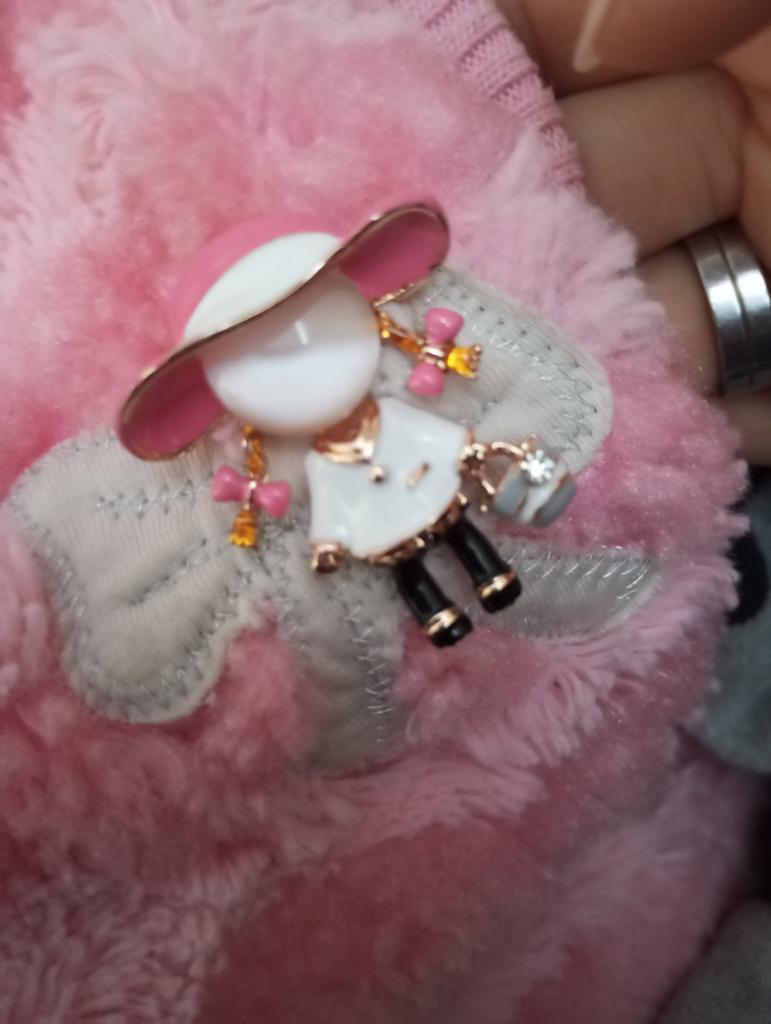 Брошечка Blucome в виде девочки. Красота милейшая 😍😍😍. Брошечка выполнена очень качественно. Металлическая и тяжëленькая. Головка девочки--перламутровый шарик. В руке у девочки сумочка с украшением--маленький камешек. Прокрашена отлично, проплешин нет. Полное соответствие с фото продавца. Полный восторг🥰😍🥰😍🥰😍. Заказала для своей 7 летней дочки, пусть учится быть красивой и носить красивые вещи. Я очень довольна, спасибо большое