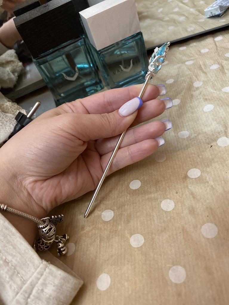 Получила шпилечку. Доехала она быстро (где-то месяц -два). Была хорошо упакована.Шпилька очень красивая и качественная. Сколов не нашла. По весу шпилька очень лёгкая. С виду она маленькая, однако ею можно хорошо закрепить волосы. Дополняю: С волос шпилька не спадает, держит их хорошо. Довольно крепкая, до сих пор не сломалась и не погнулась. На удивление она не почернела. Камень всё ещё на месте. Товаром довольна