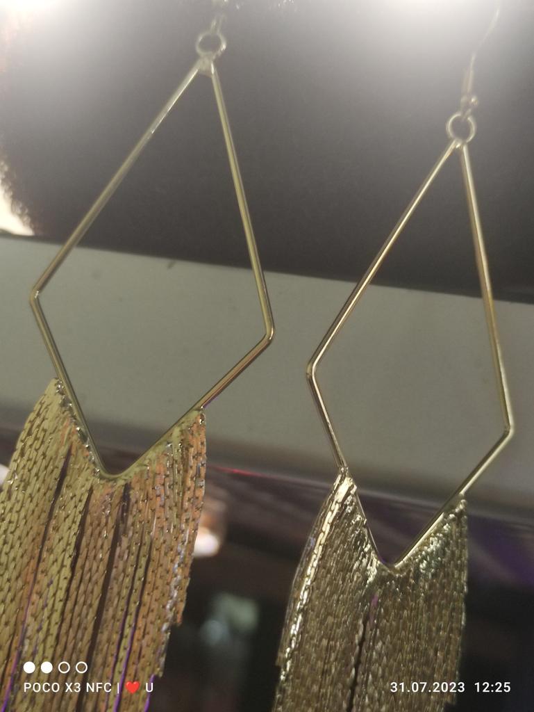 Про эти серёжки это отдельная тема. На картинке они меньше, насамом деле они очень длинные. Но очень красивые. Спасибо большое продовцу за товар и быструю доставку. Около двух недель.