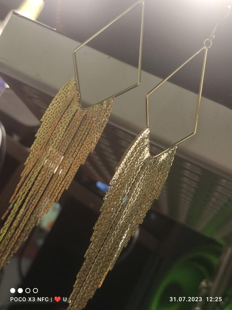 Не совсем такие, как на фото. Очень большие, доходят до ключицы. Оставлю оценку 4, потому как все-равно красиво смотрятся и носить буду. Но жаль, что не соответствуют фотографии на витрине... И рада и разочарована.. Но упакованы были очень хорошо!