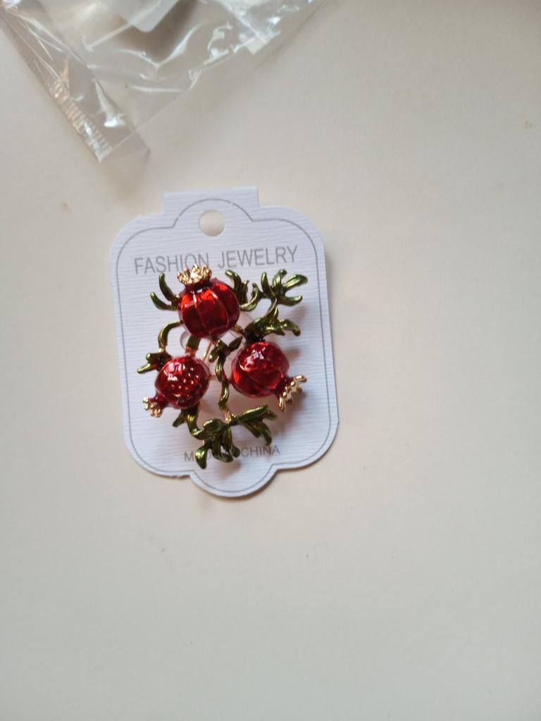 Интересная брошь, очень люблю гранаты. Не только плоды, но и обожаю цветущий гранат. Заказала это чудо, а потом нашла серьги в таком же стиле😉 Заказала и их. Жду, когда мой комплект состоится✨Сережки выглядят так(вдруг, кто-то тоже захочет составить такой комплект😉)