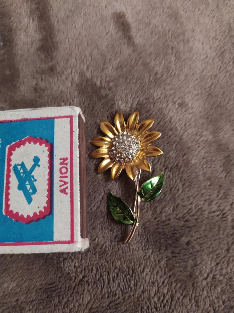 Брошь красивая , упакована в пакетик . Камешки все целы . Сразу же привлекла внимание .
