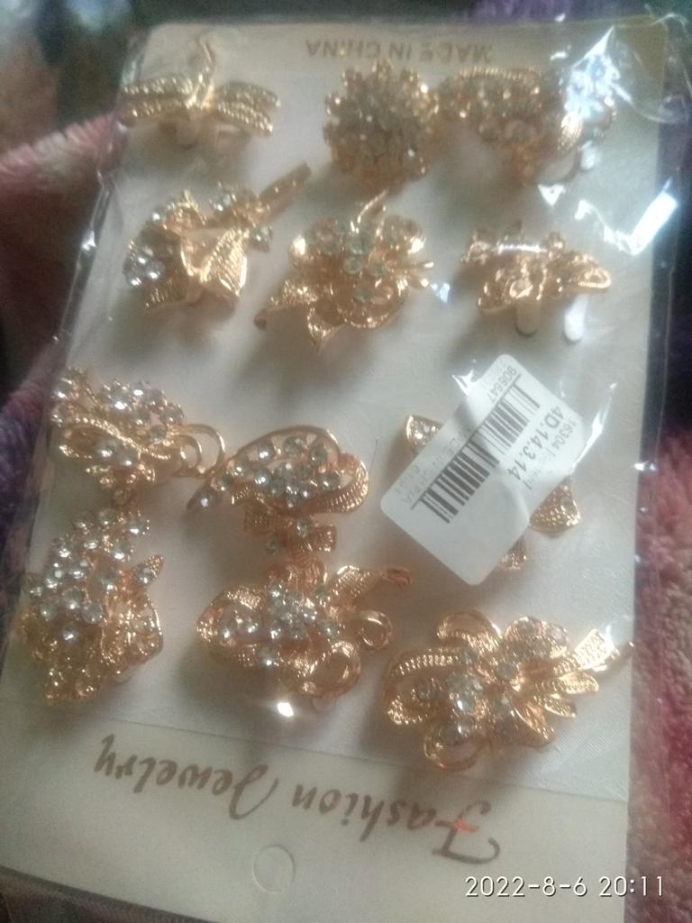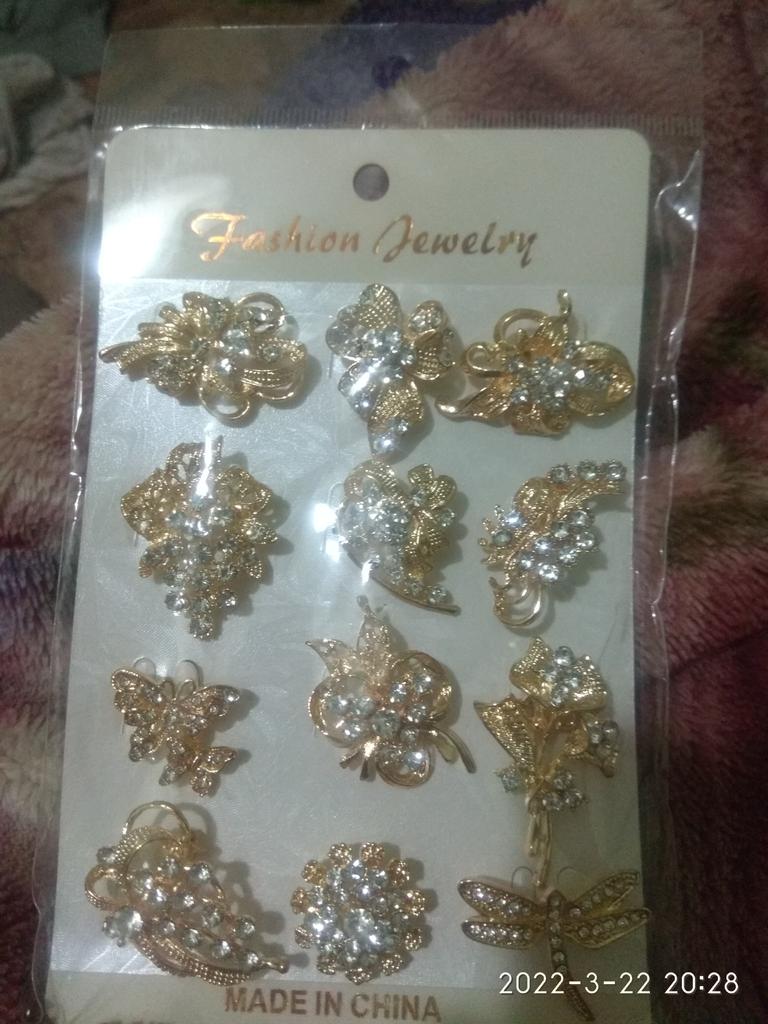 Очень красивые броши. Хоть небольшие, но не лёгкие. Минус: слишком тонкие булавки на креплении для такого веса. Плюс: с обратной стороны упаковки вложены индивидуальные, для каждой. Можно красиво подарить. Минус: ждала к 8 марта, а пришла 19. Плюс: всё целое, камни на месте, крепления пока тоже.
