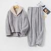 Флисовый пижамный комплект, женский однотонный зимний махровый женский пижамный костюм с длинными рукавами, комплект из 2 предметов с длинными штанами, плотная теплая домашняя одежда, женская