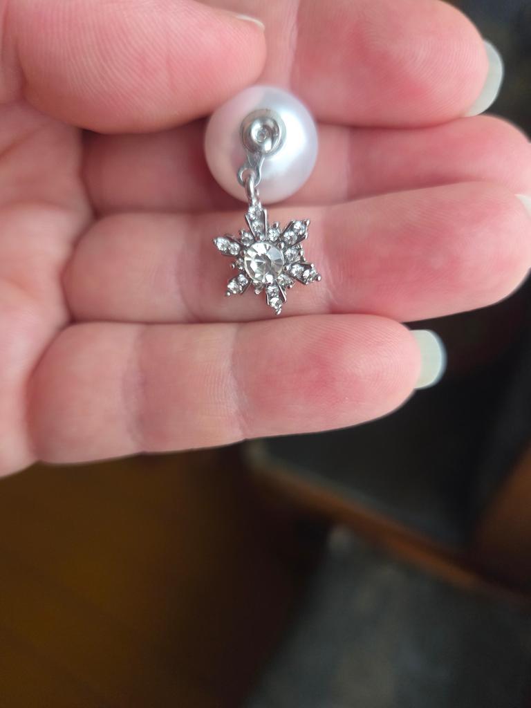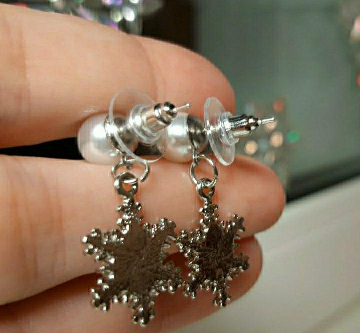 Сережки отличаются от описания и фото продавца.не стала снижать за это звезду.сами серьги классные.заказала на новый год.снежинки переливаются на свету.серьги сделаны гвоздиком.очень понравились.👍лёгкие.