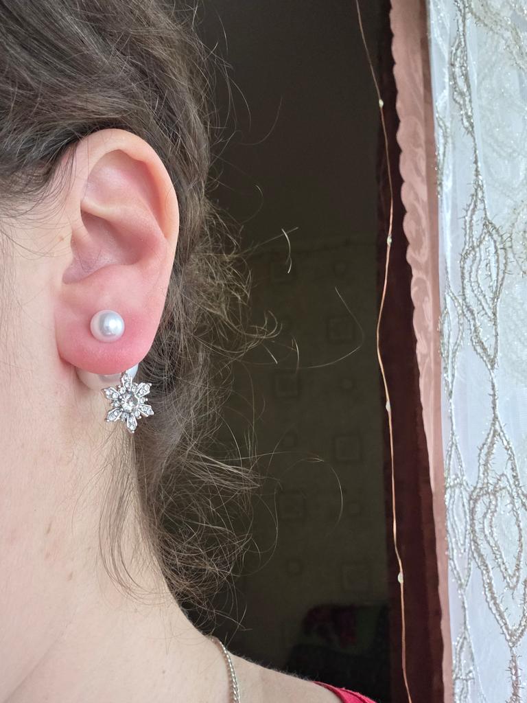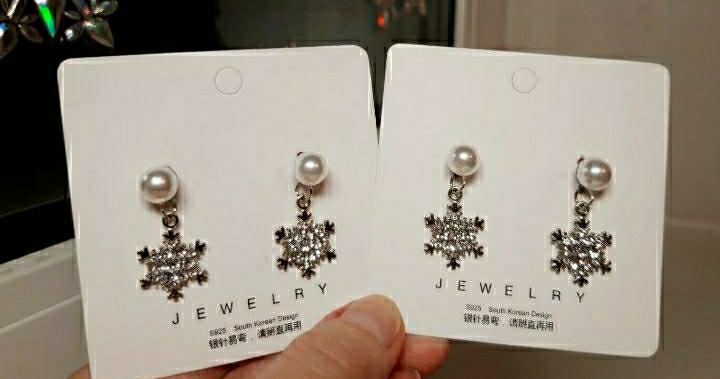 ❄❄ Серьги – снежинки ❄❄ Заказала сразу 2 пары - себе и в подарок Пришли в пакете с пупыркой, в целости и сохранности. Для защиты душек - на них были силиконовые колпачки 👍 Качество отличное, сделано всё аккуратно. Заглушки подходят, держат нормально. По весу - серьги лёгкие, металл аллергии не вызвал. При попадания света на камешки - они немного переливаются/сверкают 🌟 Рекомендация - ДА Желаю всем удачных покупок на Joom 🎁