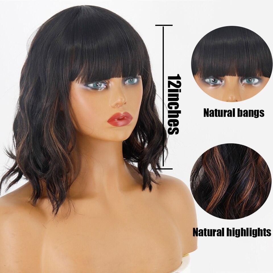 LISI HAIR Красивый короткий парик боб, женский синтетический волнистый парик с челкой, коричнево-черный парик длиной до плеч, термостойкое волокно