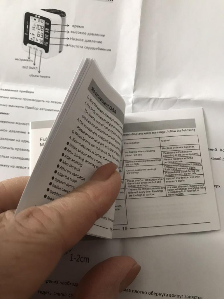 Получила я свой тонометр. Очень рада я этому приобретению. Какой он классный, маленький, лёгкий, прям малютка. При заказе было 2 варианта Китай и Россия и цена соответственно ниже на родную доставку. Я выбрала Россию, цена 480р. Доставка всего неделю, бесплатно курьером домой. Упаковка в две пупырём. Есть книжечка- инструкция на чужеродном языке и вложен лист А4 с отпечатанной инструкцией на русском языке, огромное за это спасибо. Батарейки 2 шт мизинчиковые. Мерила давление на старом аппарате и на новом. Погрешность минимальная. Я руками и ногами за эту покупку. Спасибо большое команде джум Забыла - на экране плёнка, если её снять изображение чётче, если не снимать защитите экран от повреждений