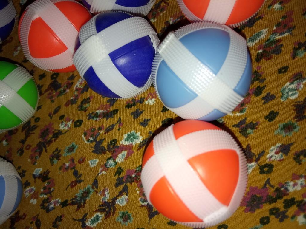 Заказ пришёл, мячики супер, как и обещано, пришло 10штук. Никакого запаха у них нет, дефектов не обнаруженно. Я ожидала, что они будут немного больше, но ничего, мне и такие подходят. Сами мячики твёрдые, обмотаны шершавой поверхностью из крепкого пластика. Если играть на ткани, то укатываться вобще не будут, что для меня огромный плюс. Да и по полу они не особо спешат много катиться, поверхность не даёт "убежать" от ребёнка). Товар рекомендую, цена небольшая, мячики замечательные, очень надеюсь, что хорошо послужат)