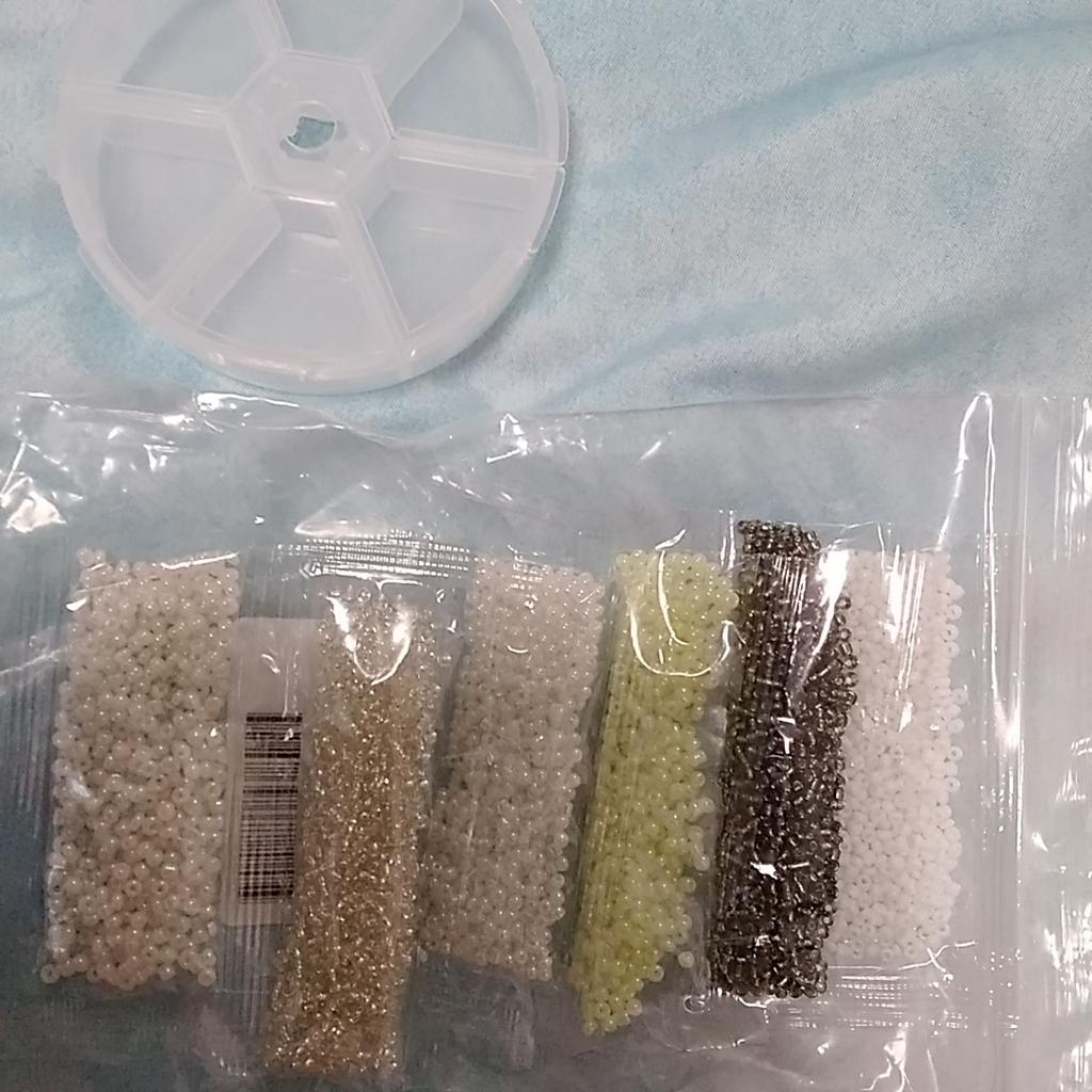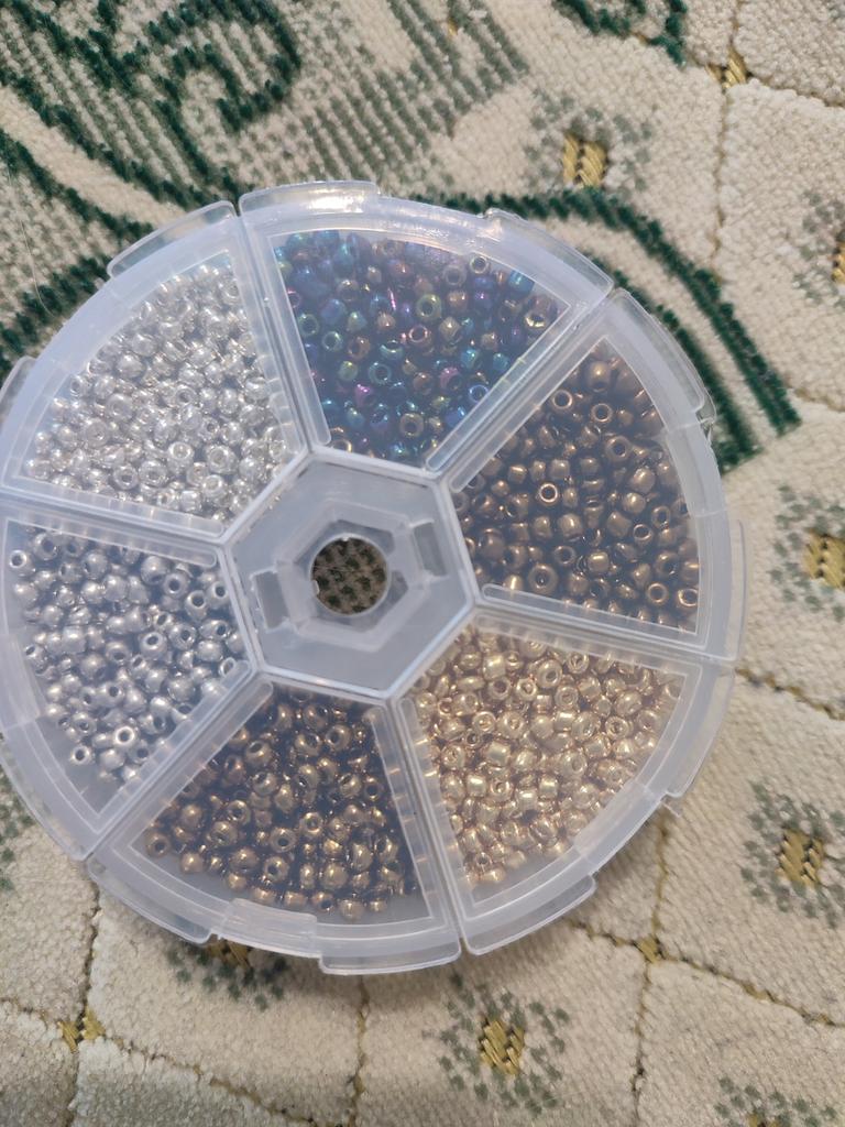 Заказала 27.06.2022, пришло почему-то на главную почту, вместо адресной 02.08.2022. Пришло все в пупырке. Бисер разной формы, есть маленькие это серебро по размеру где-то 1мм, остальные больше, а написано 2 мм. Так что думайте, решать вам. Разложила по размеру от самых маленьких, до более крупных.