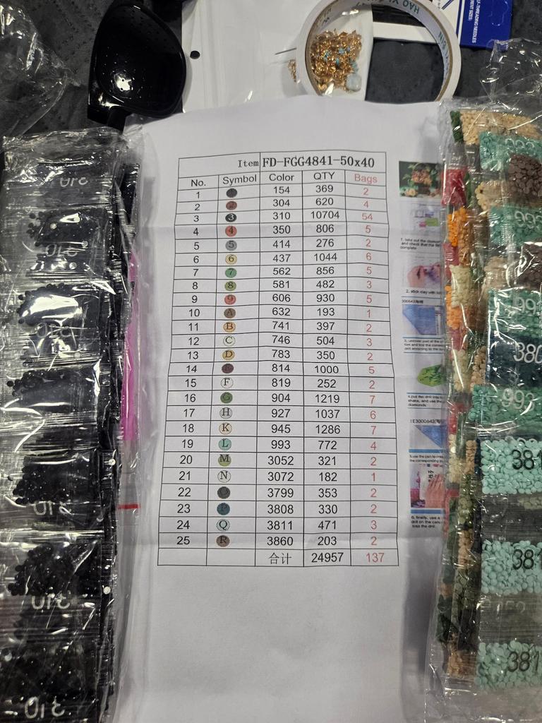 Здравствуйте! Картина уже готова. Выкладка полная, что мне очень нравится. Стразов осталось много. Размер соответствует заявленному. Обозначения только цифры и буквы, что очень удобно и наглядно. Рекомендую!