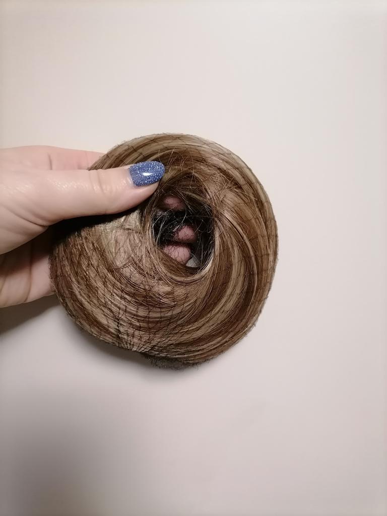 🌷Замечательная имитация собственных волос. Это резинка с волосами. Отлично крепится на два оборота. Немного не угадала с цветом, но ничего страшного в этом нет. Покрашу волосы в более тёмный цвет и будет просто супер! 👍Я очень довольна покупкой. Возможно, закажу ещё, только светлее.) Хочу добавить, что этот шиньон можно просто надеть на свой пучок, без перекрутов резинки. И закрепить двумя - тремя шпильками. Тоже очень хорошо смотрится. Так даже лучше, да, и шиньончик дольше прослужит.) 👌