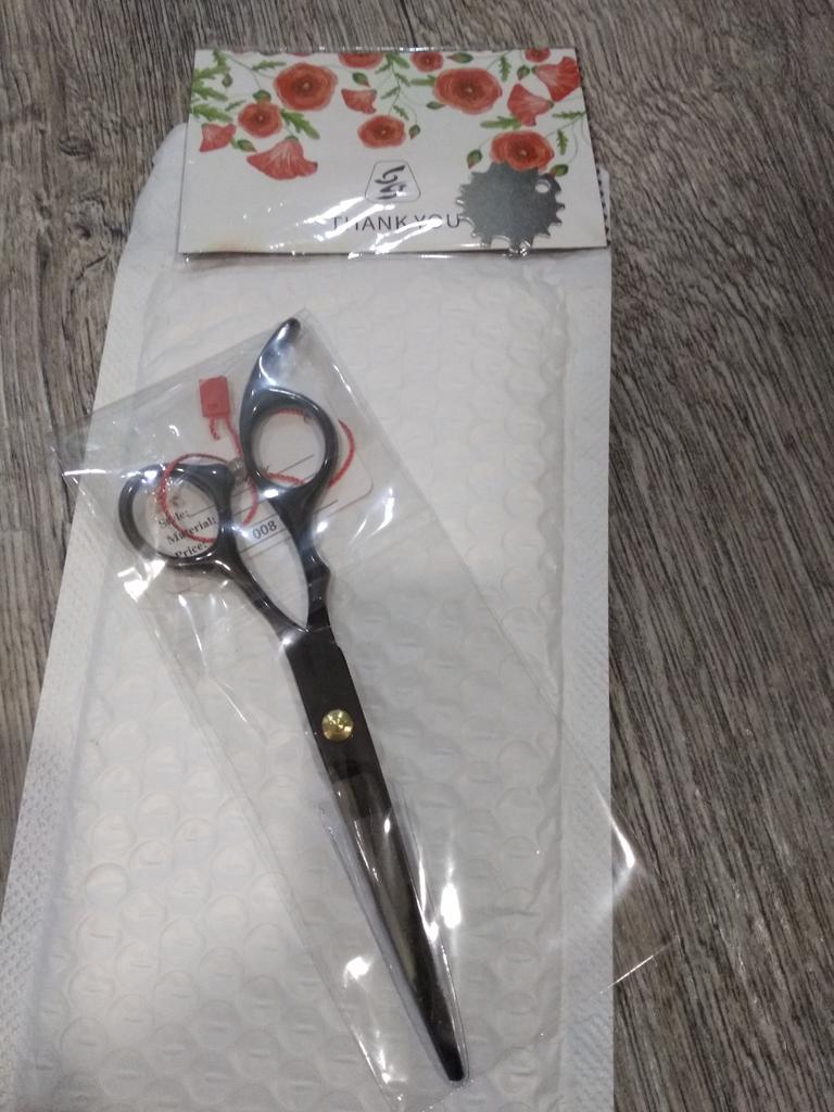 Очень хорошие ножницы, удобно лежат в руке за счет эргономической формы ручек, лезвия остро заточены👍🏻. Режут хорошо, без закусываний, что очень важно для того, чтобы кончики волос в дальнейшем не расслаивались. Пришли в мягкой упаковке, отдельно салфетка и ключик, большое спасибо продавцу. Ах да! Маленькая открытка со словами благодарности 🥰. Ну ооочень приятно! Рекомендую.