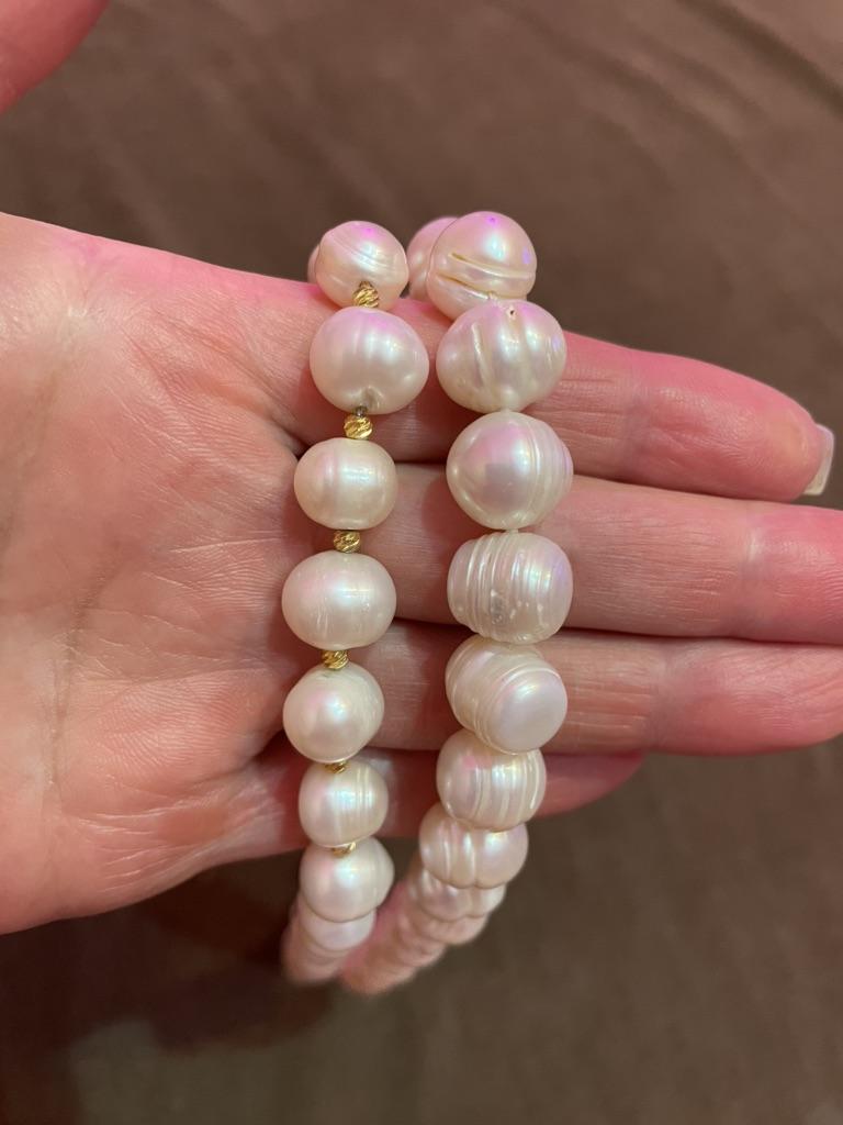 Ожерелье тяжёлое, бусины холодные, похожи на настоящий речной жемчуг. Бусины неровные но ожерелье от этого хуже не становится. Мне очень понравилось. На паре бусин есть отверстия.