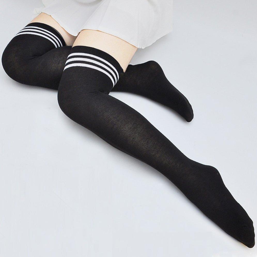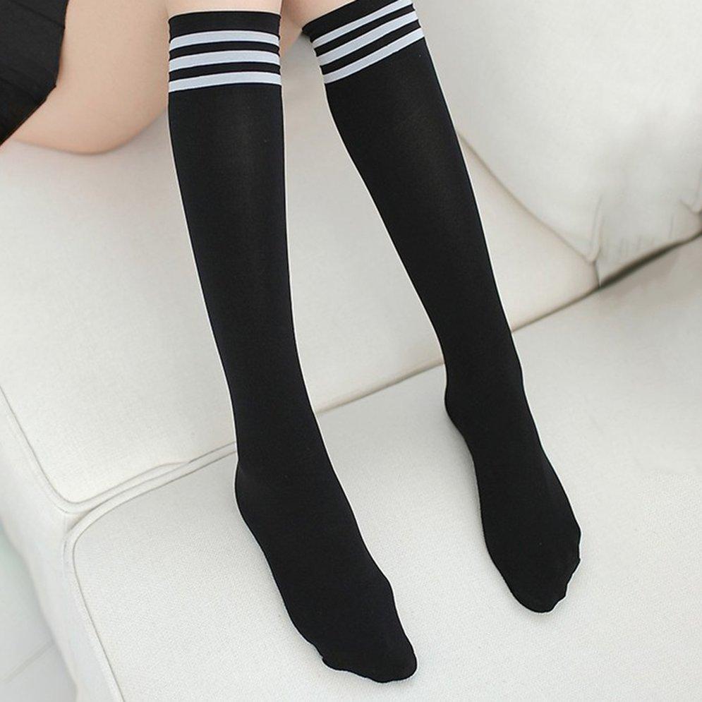 Yali удобные женские гольфы модные черные, белые полосатые гольфы женские выше колена хлопковые чулки очаровательные девушки