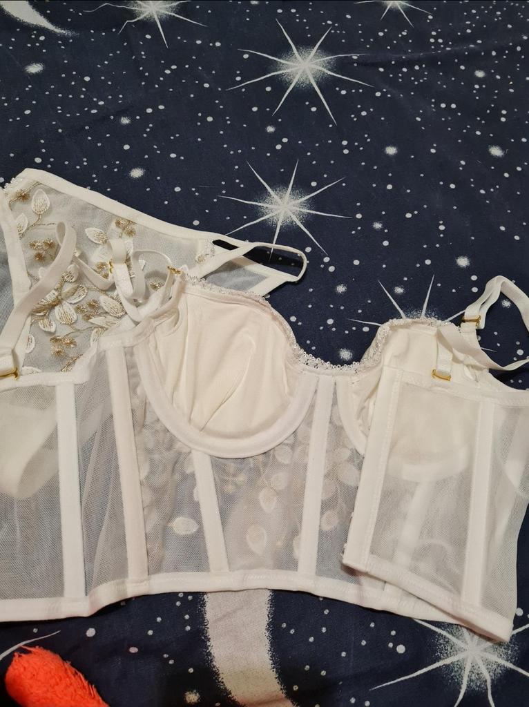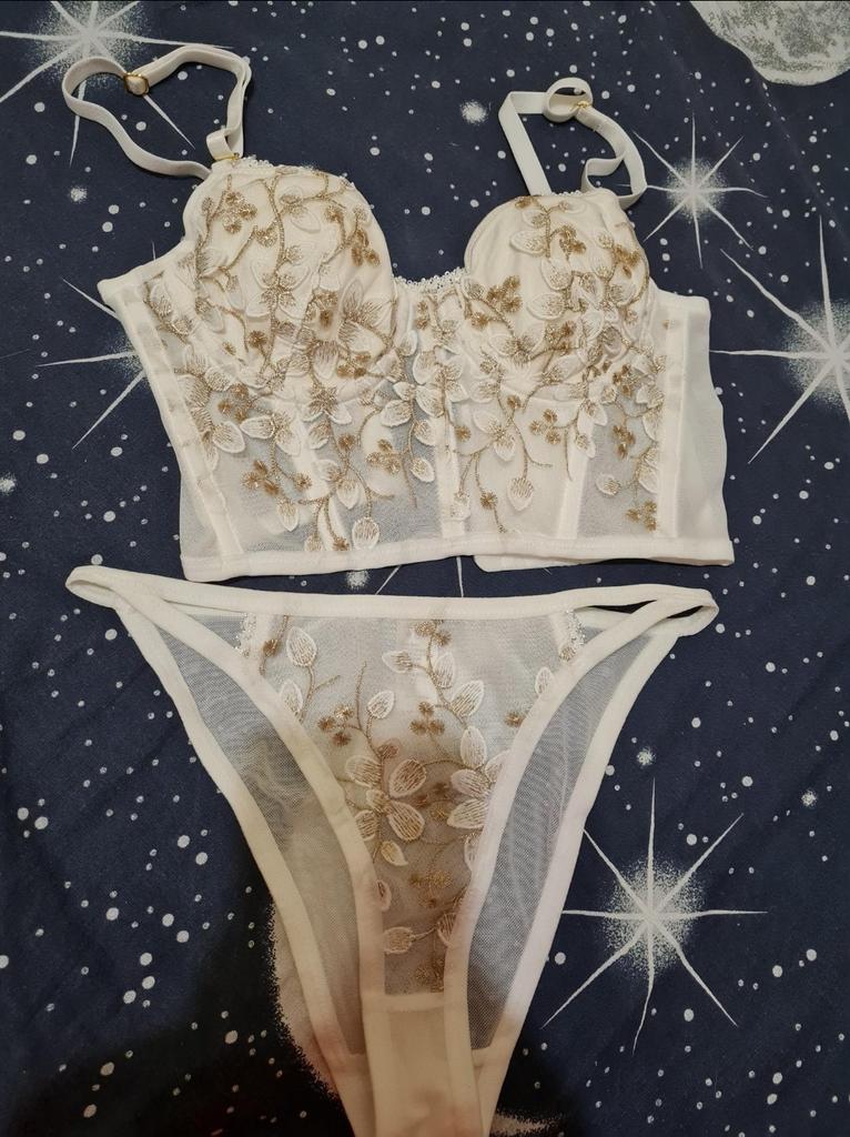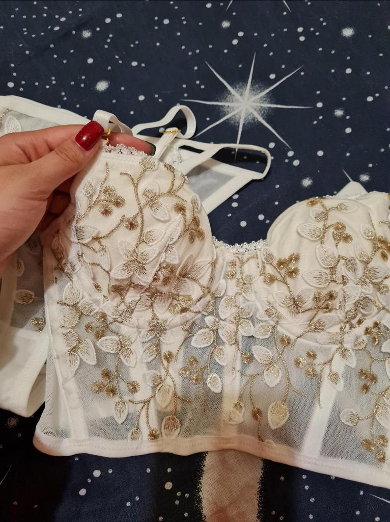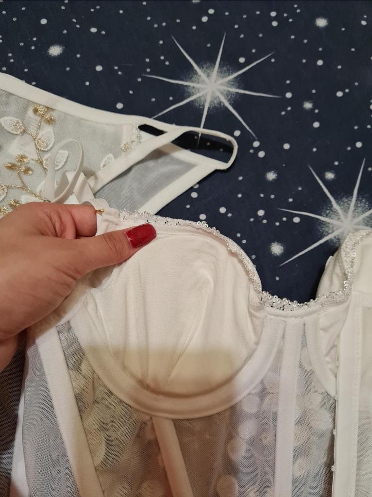 Шикарный комплект 🤍 комплект-мечта ➕ СКИДКА 1️⃣0️⃣% на первую покупку за подписку от проверенного магазина GOGNGTR ☑️ ⤵️ Стоит признать, что с таким огромным выбором красивого и качественного нижнего белья на Джум, я забыла, что значит повседневное белье ☺️ К чему все эти формальности, если можно каждый день чувствовать себя самой нежной, обворожительной и красивой, даже если этого (белья) никто не видит 😉 Очередная покупка = сплошное удовольствие! Ткань комплекта приятна к телу, а его неповторимость ласкает душу 🔥 Лиф-корсет на косточках, с пароллоновыми вставками для груди (можно убрать☝️), застегивается на 7(!) 3х-рядных крючков. На ОГ 107/ ОпГ 92см подошел 👌 А как лежит в нем моя тро€чка - закачаешься! 🍒 Лямки регулируются по длине и отстегиваются (!), что ооочень удивило: хотя и люблю такие модели за практичность (можно заменить на другие), но на Джум они мне не попадались раньше ☺️ Но имейте ввиду, что это все же больше лиф, чем корсет, и без лямок, он грудь не держит 🤷🏼 Трусики очень удобные! Ластовица хб. Р-р XL идеально сел на ОБ 112см. 👍 Ну что еще сказать: комплект оооочень красивый! 😍 Шитье нежное, но в то же время просто 💣 Рекомендую от души! ⭐⭐⭐⭐⭐ Доставка в АК РФ в сборной посылке меньше месяца. Трек отслеживался. Цена на момент покупки 808р. Всем удачных покупок! 🌹 Будьте красивы и счастливы!