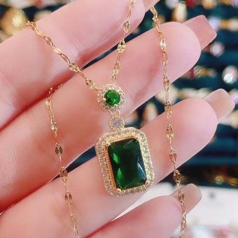 Элегантное зеленое квадратное ожерелье-цепочка с подвеской, женское модное свадебное ожерелье, вечерние украшения, подарки на годовщину