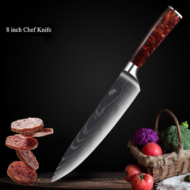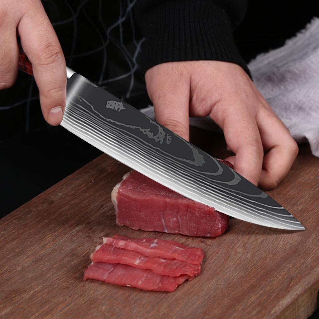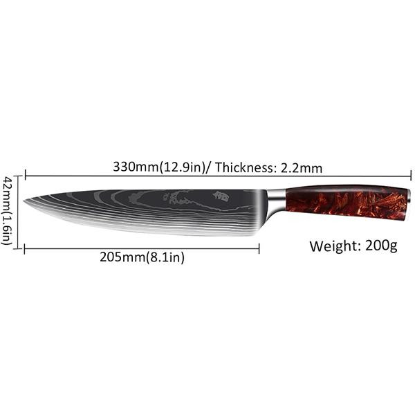 Кухонные ножи 8-дюймовый нож шеф-повара из дамасской стали с красивым узором, легкий цвет, деревянная ручка, кухонные инструменты