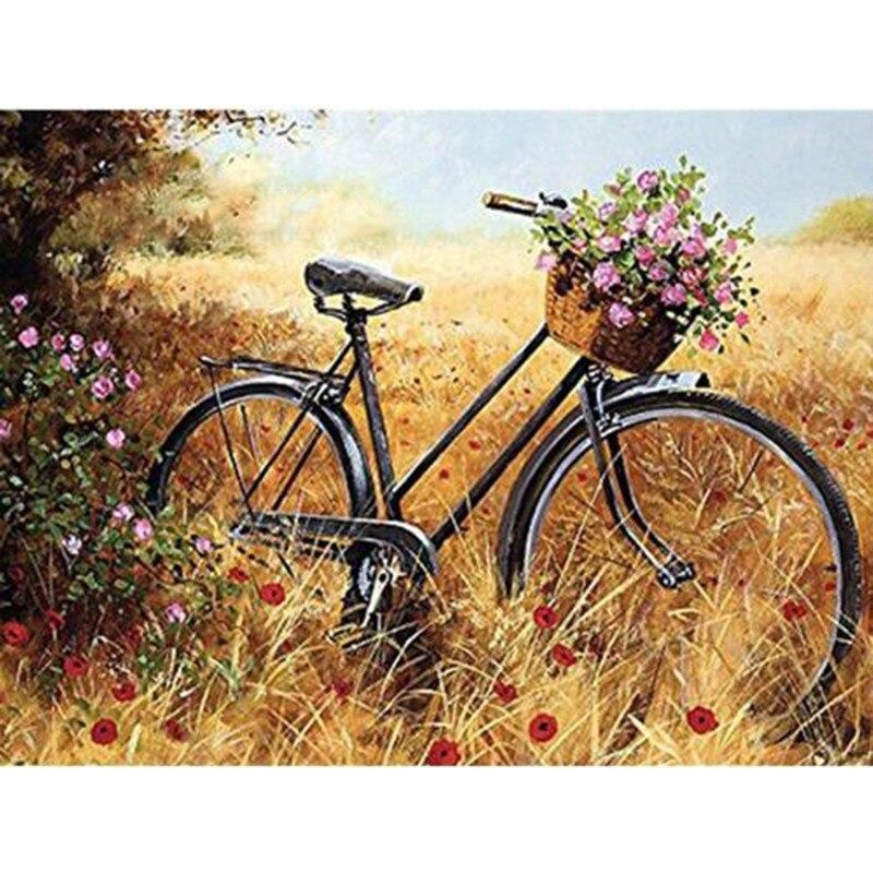 DIY 5D алмазная живопись, полная круглая смола, велосипед, цветы, алмазная художественная вышивка, пейзаж, вышивка крестом, мозаика, домашний декор