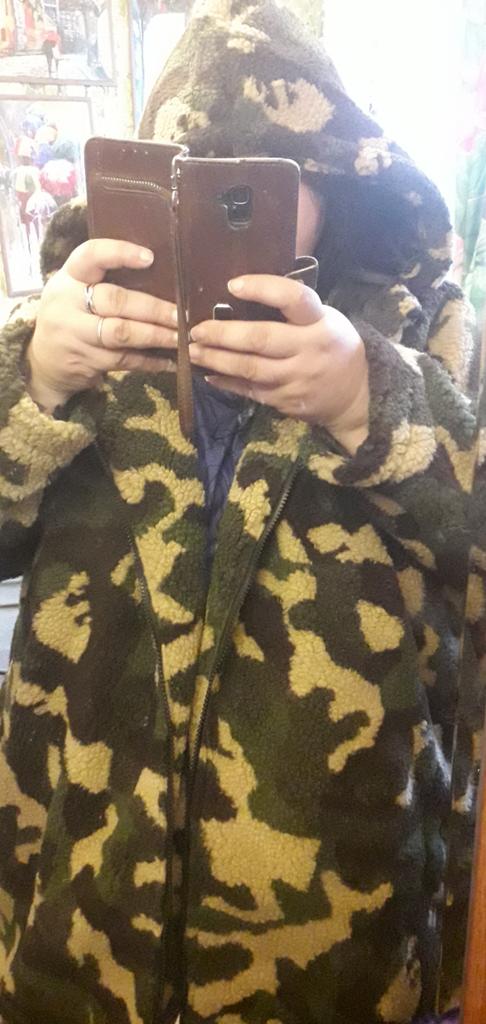 Куртка teddy bear в расцветке милитари. И промокод на скидку C3498OX4CG Сначала я заказала себе точно такую же куртку в ярком, этническом цвете. Подробный обзор тут 👉 Смотри, какой крутой обзор на товар из Joom https://at.joom.com/dl/WwUEmfCpLJv5PoGq8 Но куртка так полюбилась моей дочери, что она то и дело брала ее у меня взаймы. Надоело мне это дело, и я заказала для нее эту, в более подходящей для молодой женщины расцветке. Расцветка милитари всегда в моде. Куртки абсолютно одинаковые. Оверсайз. Ткань плюшевая. Есть подкладка. Хороший капюшон. Низ , чтобы не поддувало, можно затянуть шнурком. Карманы в боковом шве. Выбранный размер XL. Мой рост 167, параметры 98-85-100 Рост дочери 171, параметры 102-86-109 Свободно как на мне, так и на ней. Куртка лёгкая, но при этом теплая, выдержит небольшой минус, до -3 точно. В уходе неприхотлива, ибо мех уже априори свалялся, бояться нечего) . Замеры ОГ 182 Длина 83 Длина рукава от шва 29 Пошив фабричный. Однозначно рекомендую любителям неординарных вещей. Сейчас куртка недоступна, надеюсь, после китайского нового года появится в продаже.