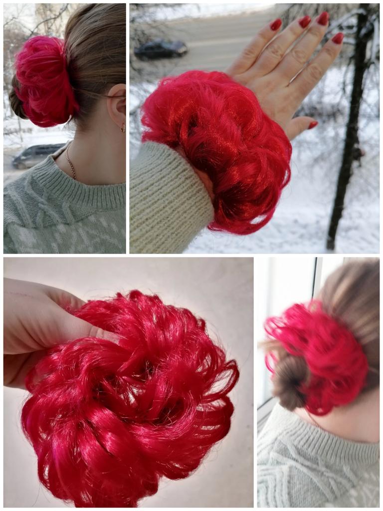 Резинка из искусственных волос рубинового цвета ❤️ ✔️Отличного качества резинка. Очень удобно и легко пользоваться, на пучёк своих волос накрутила и вуаля, все готово 😁 ✔️Захотелось эксперимента, взяла красную. На улицу вряд ли решусь одеть, а вот дома да. Удобно и практично. Продавца и товар рекомендую, полное соответствие описанию и фото продавца 👍