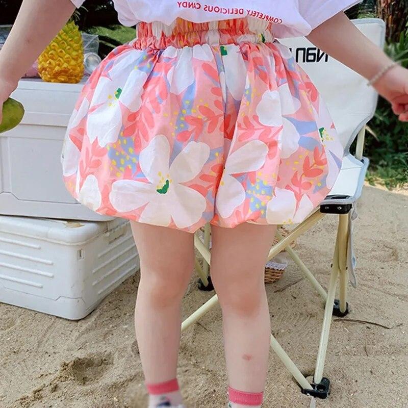 Детские шорты для девочек, брюки тыквы с высокой талией, детские милые шаровары