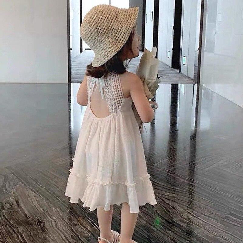 Детское платье для девочек, летнее кружевное платье принцессы с открытой спиной, юбка на подтяжках, белая