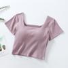 Летние шорты с накладкой на грудь, цельная чашка с квадратным вырезом и короткими рукавами с пупком, женская внутренняя футболка — купить товар онлайн с бесплатной доставкой по всему миру!