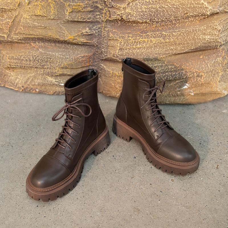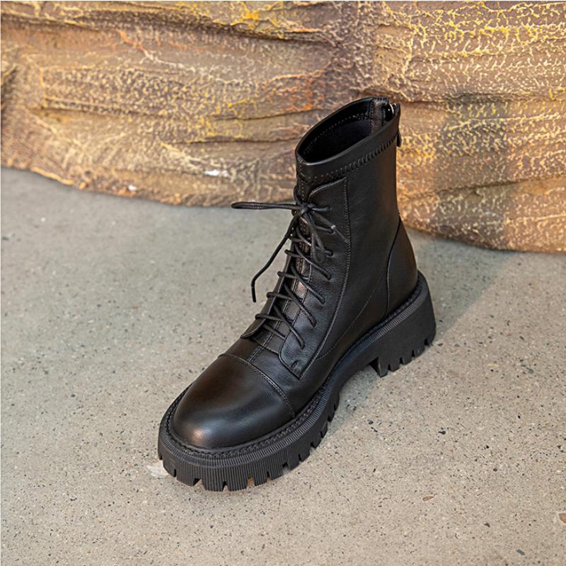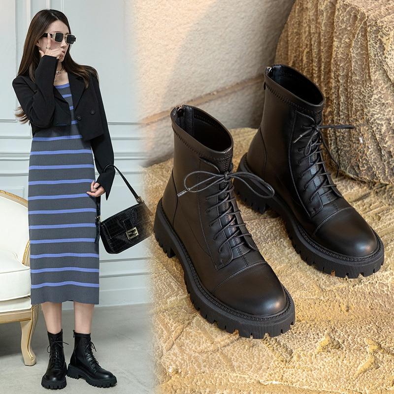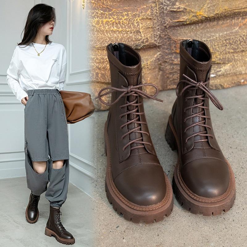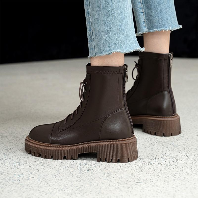 Женские ботильоны, современные полусапоги из натуральной кожи, осенне-зимние ботинки из воловьей кожи на молнии сзади