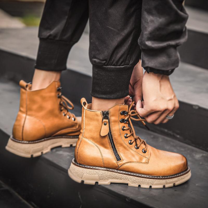 Мужские кожаные ботинки Ботинки Мартины Уличная мода Короткие сапоги с боковой молнией и круглым носком Сапоги для инструментов
