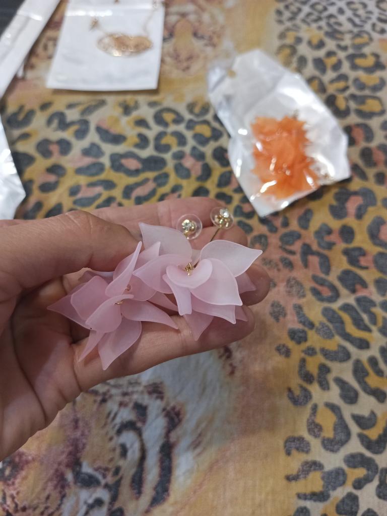 Серьги интересные, лёгкие. Смотрятся потрясно. Цвет нежно 💕розовый. Летний вариант. Сделаны на совесть, крепления хорошие. Рекомендую, не пожалеете 👍😻 Всем удачи. Джуму 🙏💕