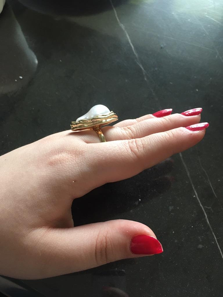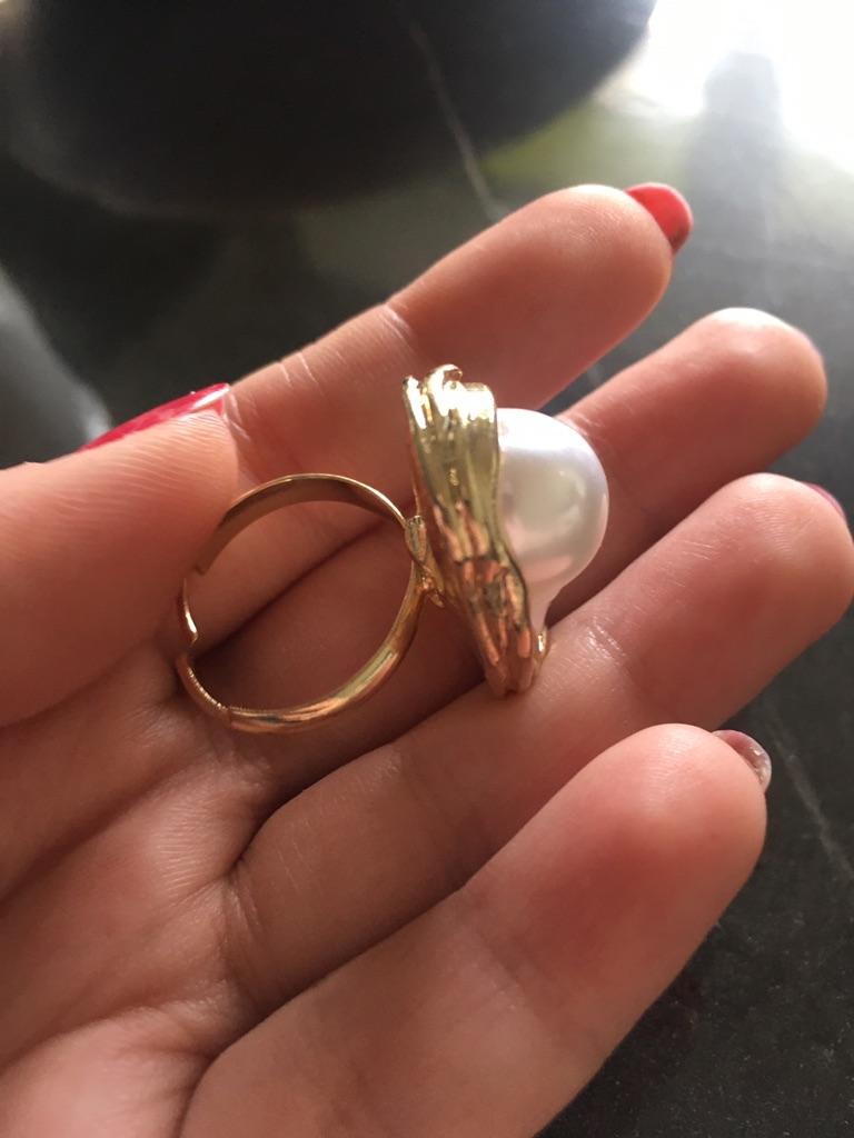 Кольцо классное, очень большое, на фалангу. Сильно перламутровое. На любой размер. Пришло быстро)