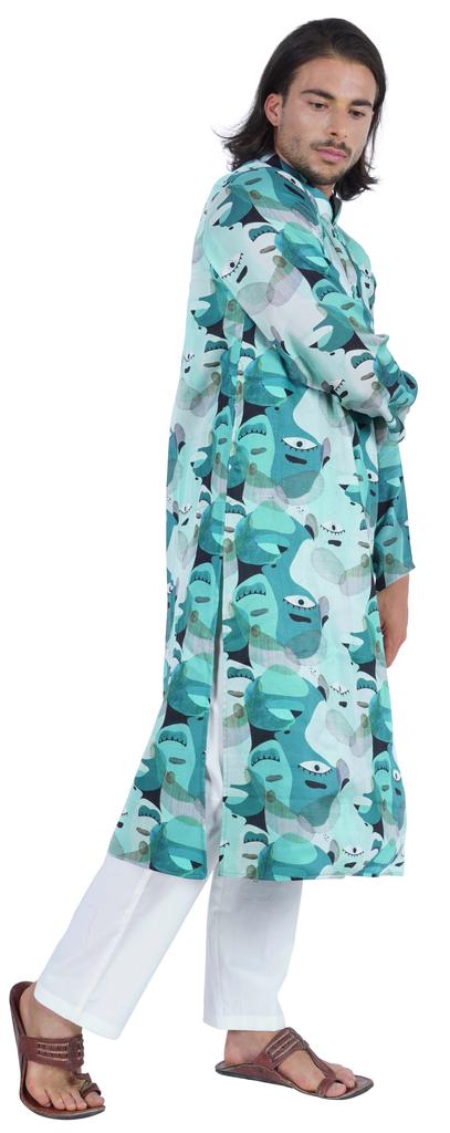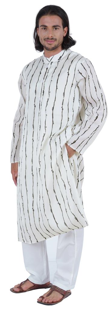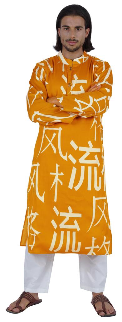 Эта традиционная индийская курта из атаси. Свободный крой обеспечивает легкую посадку и позволяет воздуху свободно циркулировать через одежду.. Свободная удобная посадка делает его отличным носком. Он отличается удобной тканью, воротником-стойкой и планкой с пуговицами спереди, застежкой на пуговицы, полным рукавом, боковым карманом, прямым нижним краем, боковым разрезом для комфорта.