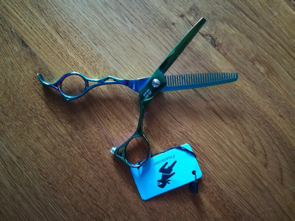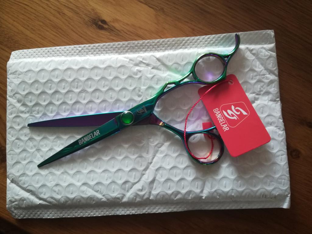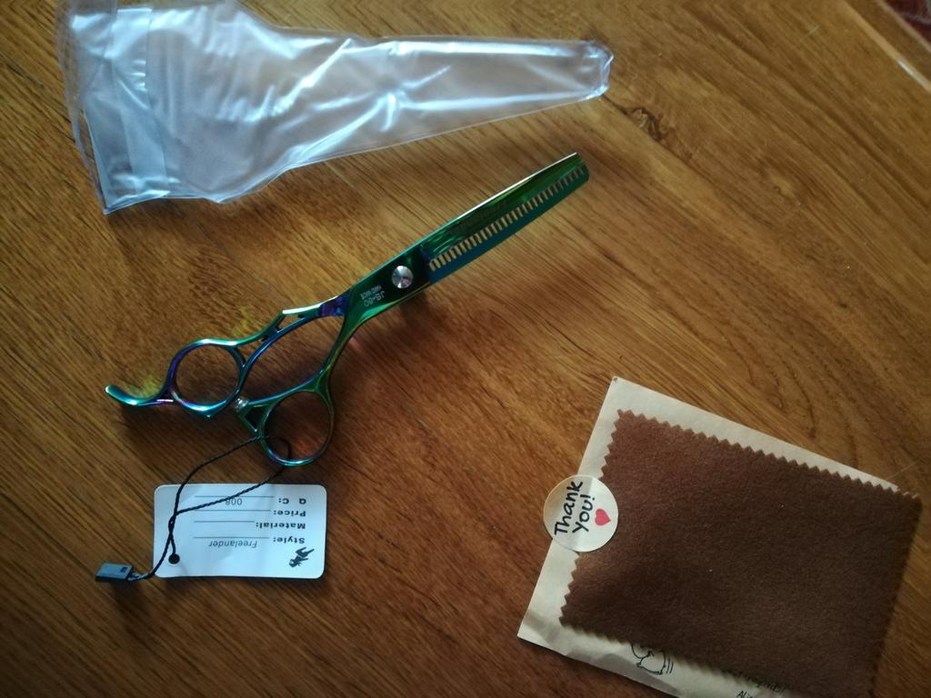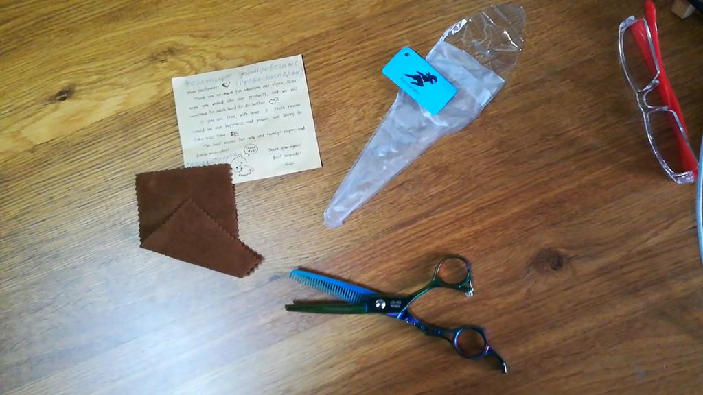 Профессиональные филировочные парикмахерские ножницы. Цвет: хамелеон ( сине - фиолетово - зелёные) Заточка класс. Немного тяжеловаты, но для домашнего использования очень даже ничего! К ножницами прилагались небольшая мягкая салфетка и открыточка. Спасибо продавцу и всем работникам производства. Спасибо Джуму и службам доставки🌹