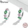 Женские серьги BAMOER из стерлингового серебра 925 пробы с нежным блестящим розовым цирконом и цветами, модные ювелирные изделия