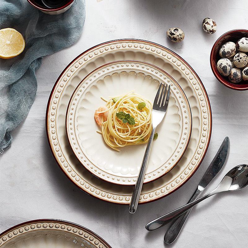 Европейская ретро посуда Керамический диск Тарелка для стейка Салатная тарелка Западная еда Обеденная тарелка Кухонные принадлежности