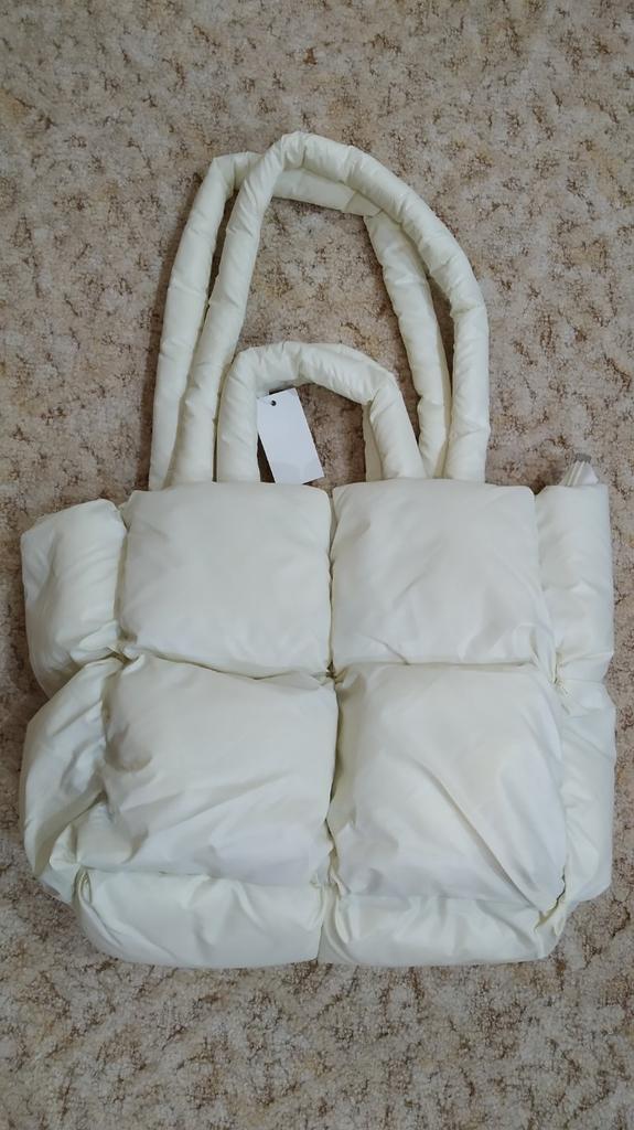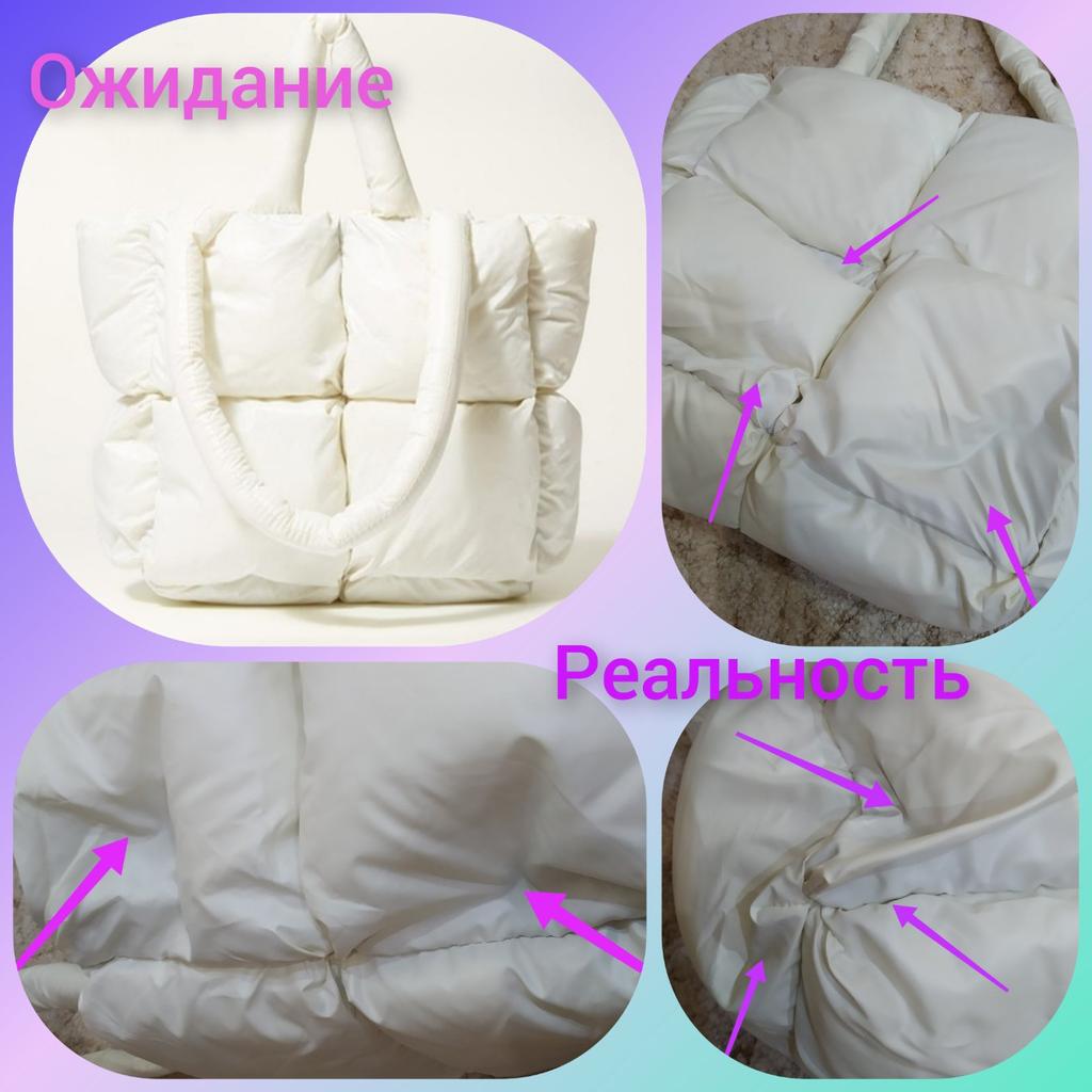 Сумка от магазина Yogodlns.👜 Фото+видео. Получила сумку дутую, стёганую, белого цвета. Хорошо подойдёт на осень/зиму. 📢 Промофото и описанию соответствует, только выглядит не так эффектно. 🤷 📍Цвет не белый, а молочный. 📍Внутри наполнитель, весь сбитый в кучу. Пришлось немного приложить руки, чтобы придать более менее нормальный вид. 📍Две пары ручек: длинные (наплечные) и короткие. 📍Закрывается на молнию и кнопку. Всё рабочее. 📍Внутри три кармашка с двух сторон, один из которых на замочке. 📍Подкладка плотная, добротная. 📍Дно картонное, не уплотнённое, края проступают сквозь ткань и это мне не нравится! 🥴 📍Качество пошива хорошее. Нитки нигде не торчат, швы ровные. 📍Лёгкая, вместительная. 📏 Размер: 👉 По донышку - 28×12 см. 👉 Высота сумки без ручек - 26 см. 👉 Длина ручек (примерно): короткие - 13 см и длинные - 30 см. 📦 Пришла упакованная в пакет с заправленными внутрь ручками. В подарок продавец положил черную резинку для волос, за что отдельное спасибо. 🎁 ✈️ Доставка в Беларусь, от момента оформления заказа и до получения на почте, заняла 1,5 месяца. 🧐 Трек-номер отслеживался на всём пути. Спасибо любимому Джумику! 🤗❤️ Всем приятных покупочек и быстрых доставочек! 🛍️🛒