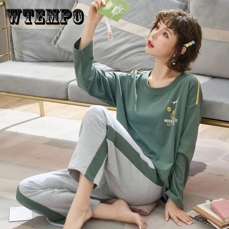 Женский хлопковый пижамный комплект, весенне-осенний пижамный комплект с длинными рукавами, милый мультфильм, зимняя домашняя одежда больших размеров, повседневный свободный пуловер с круглым вырезом, ночная рубашка — купить товар онлайн с бесплатной доставкой по всему миру!