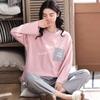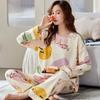 Женский хлопковый пижамный комплект, весенне-осенний пижамный комплект с длинными рукавами, милый мультфильм, зимняя домашняя одежда больших размеров, повседневный свободный пуловер с круглым вырезом, ночная рубашка